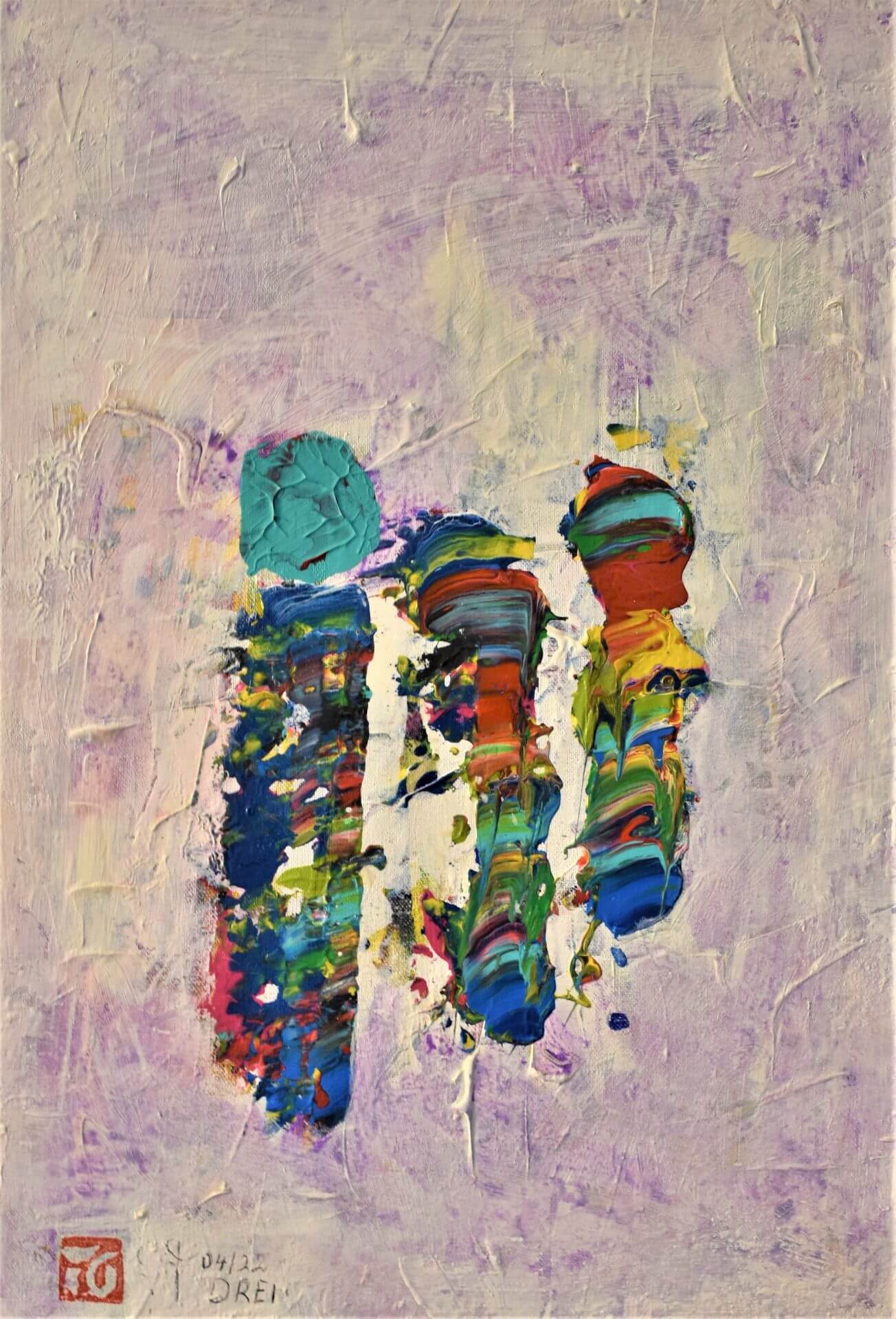 04/22 „DREI“, Acryl und Acryllack auf Baumwolle, weiß übermalt, 35x50cm