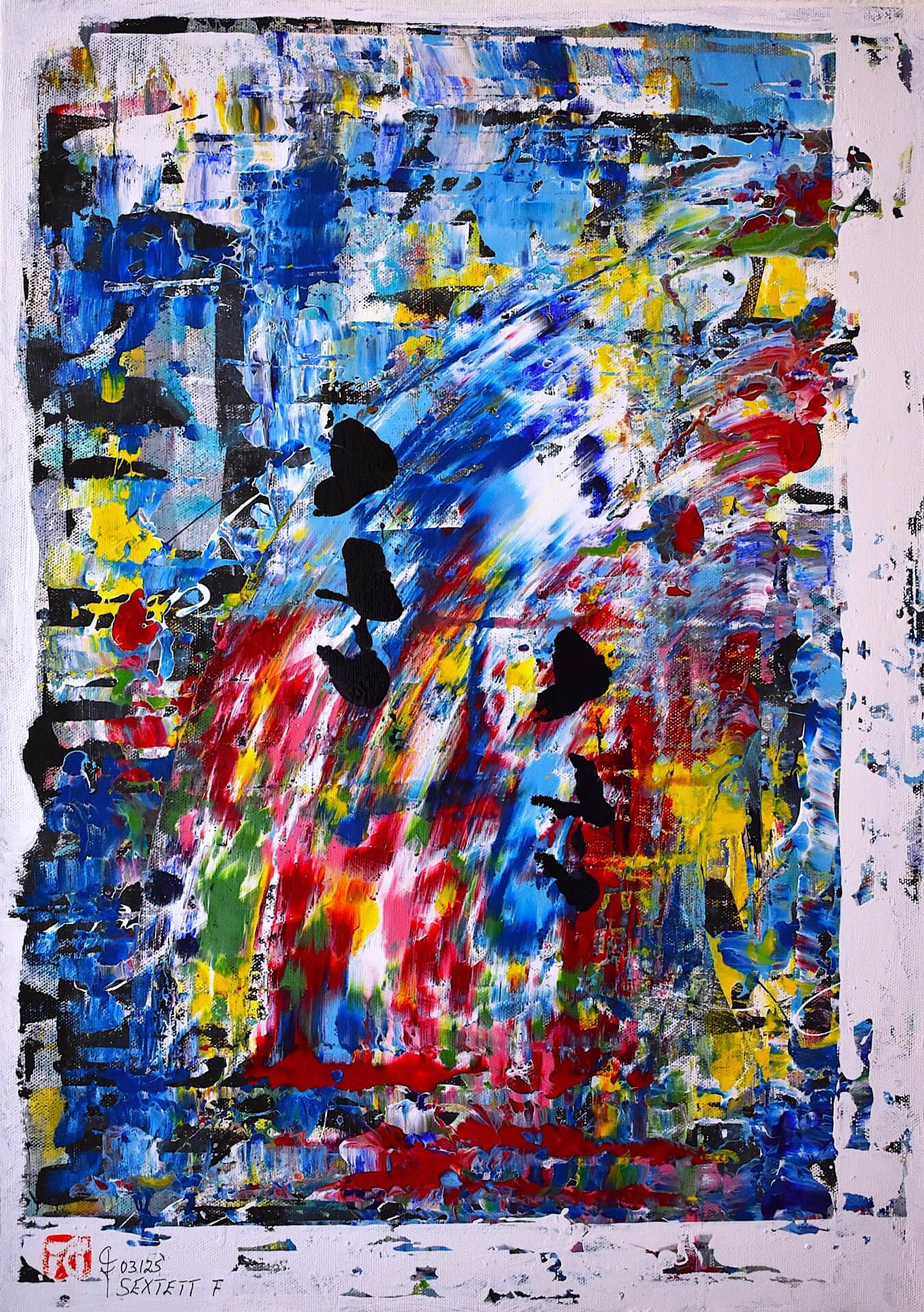 03/25 „SEXTETT F“, Acryl und Acryllack auf Baumwolle, 50x70cm