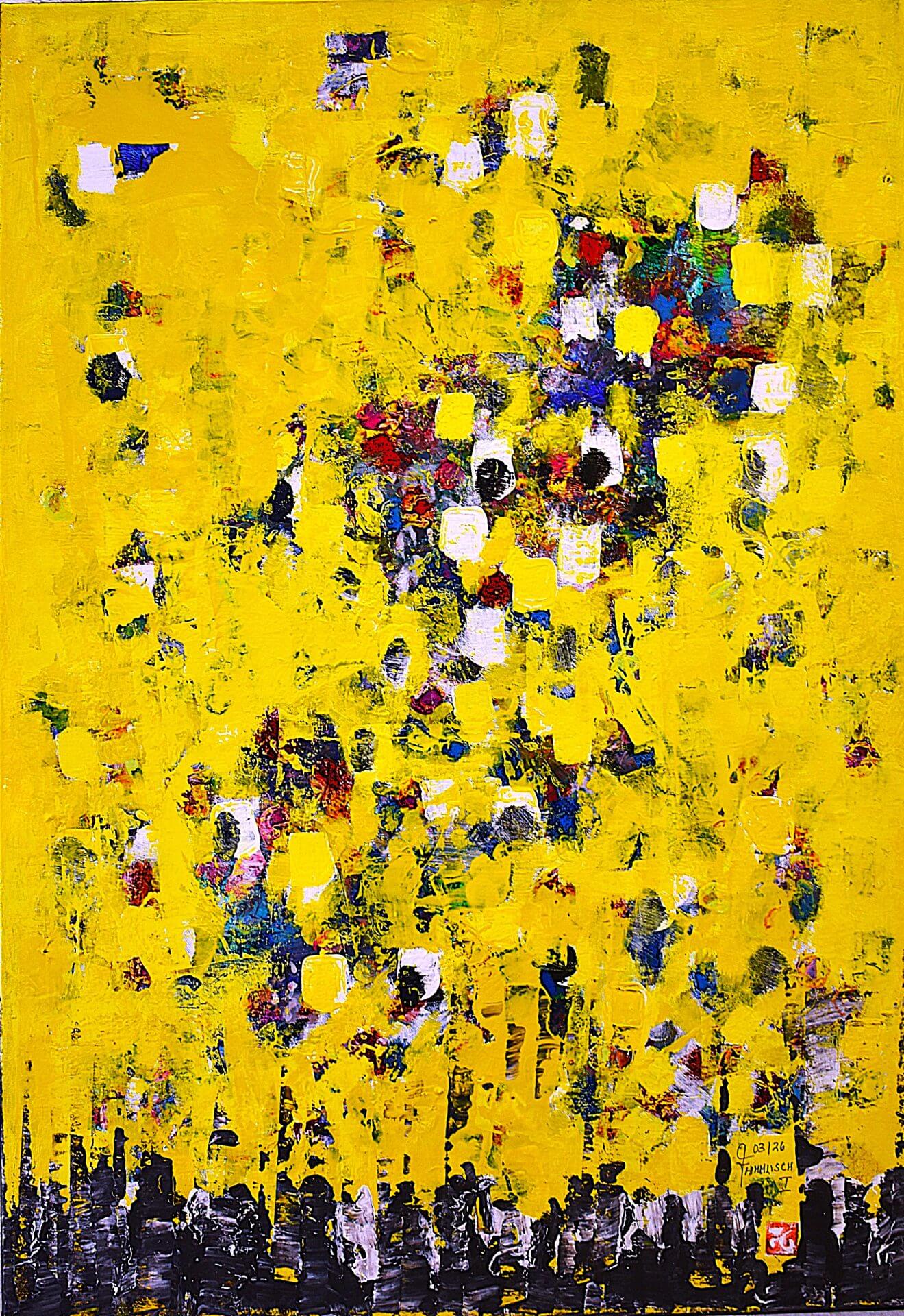 Gelb ist für mich eine Farbe die Freude, Wärme, Harmonie und in allem auch das Gegenteil Trauer, Kälte, Disharmonie ausdrücken kann. Mich fasziniert, dass ich mit ihr die „erweiterte Denkungsart“ zeigen kann, die im Paradoxen das Universelle erkennt.