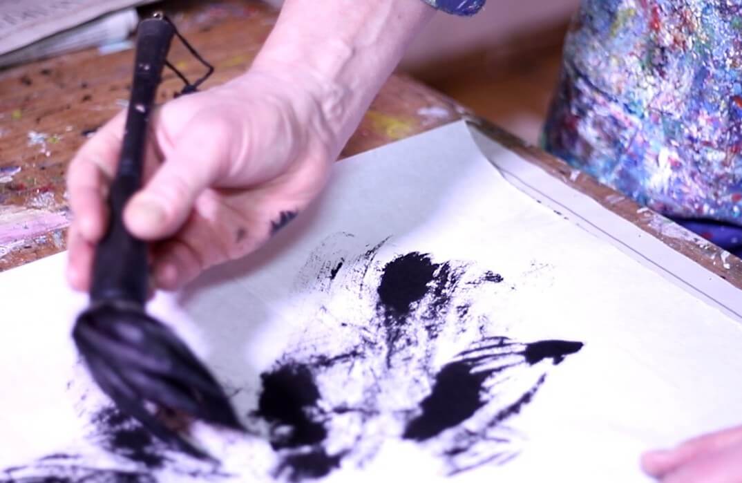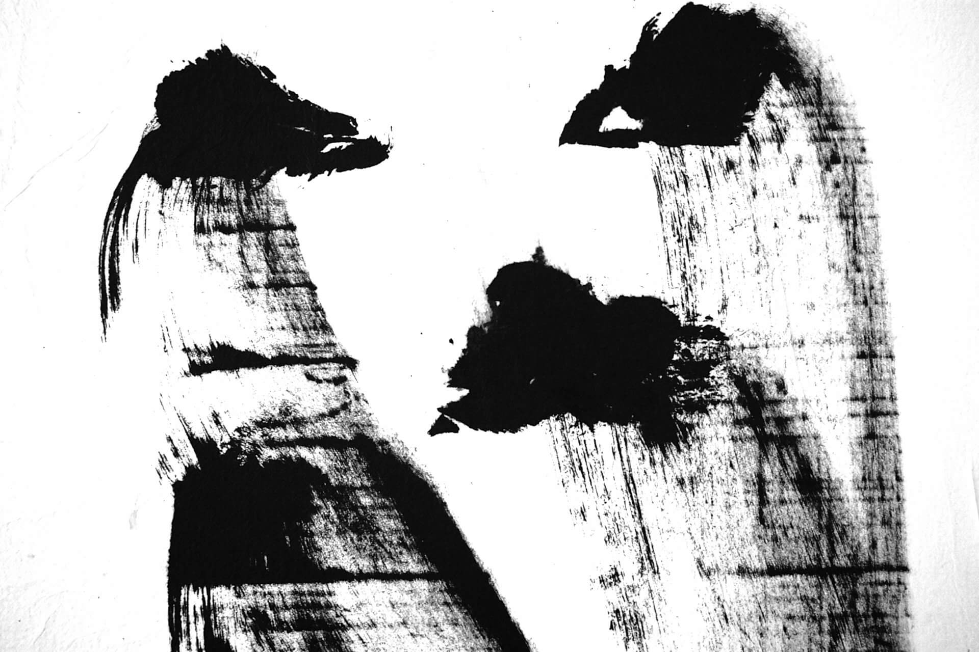 (Kopfbild: Ausschnitt aus 06/2025 „TIERISCH NEUGIERIG“, Chinatusche auf Reispapier, auf Reispapier geleimt, 46x66cm)