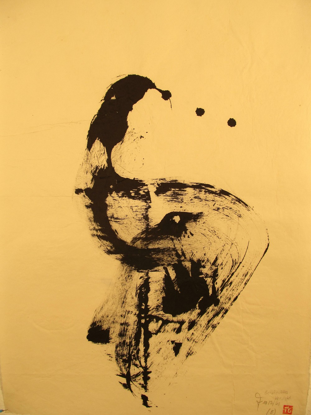 2000 Abstrakte Kalligrafie: „III“, Chinatusche auf Reispapier, auf Reispapier geleimt, 50x70c