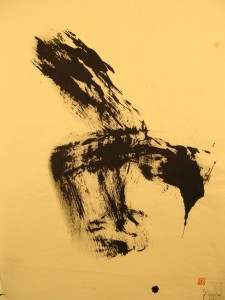 2000 Abstrakte Kalligrafie: „V“, Chinatusche auf Reispapier, auf Reispapier geleimt, 50x70cm