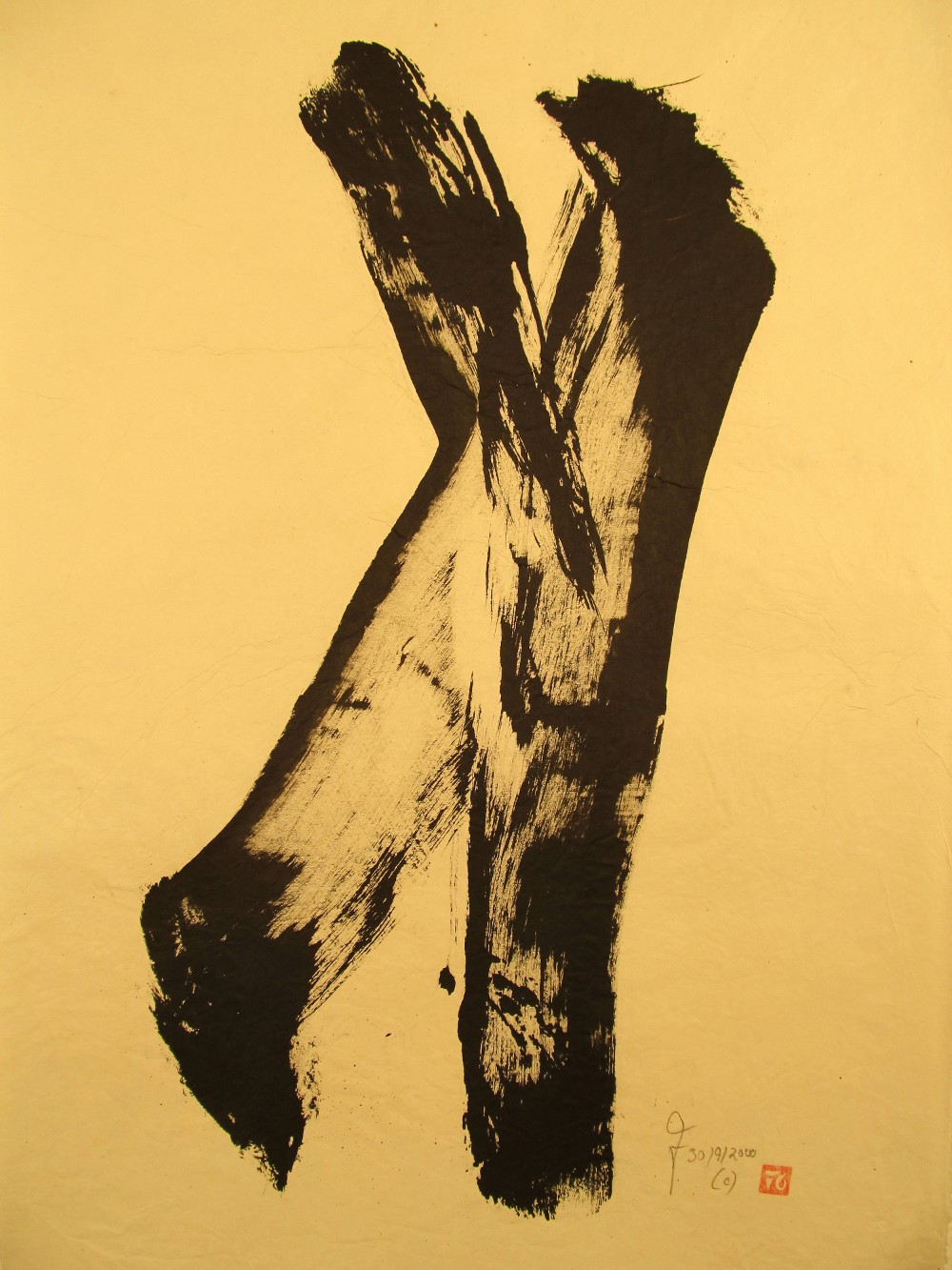2000 Abstrakte Kalligrafie: „XI“, Chinatusche auf Reispapier, auf Reispapier geleimt, 50x70cm
