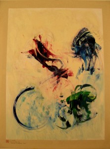 „HÖHR DER FLÖTE ROHR, SEHNSUCHT ES VERKÜNDET“ (Rumi) 2004 Poegrafie: “HÖHR DER FLÖTE ROHR, SEHNSUCHT ES VERKÜNDET”, Öl auf Nessel, 100x130cm