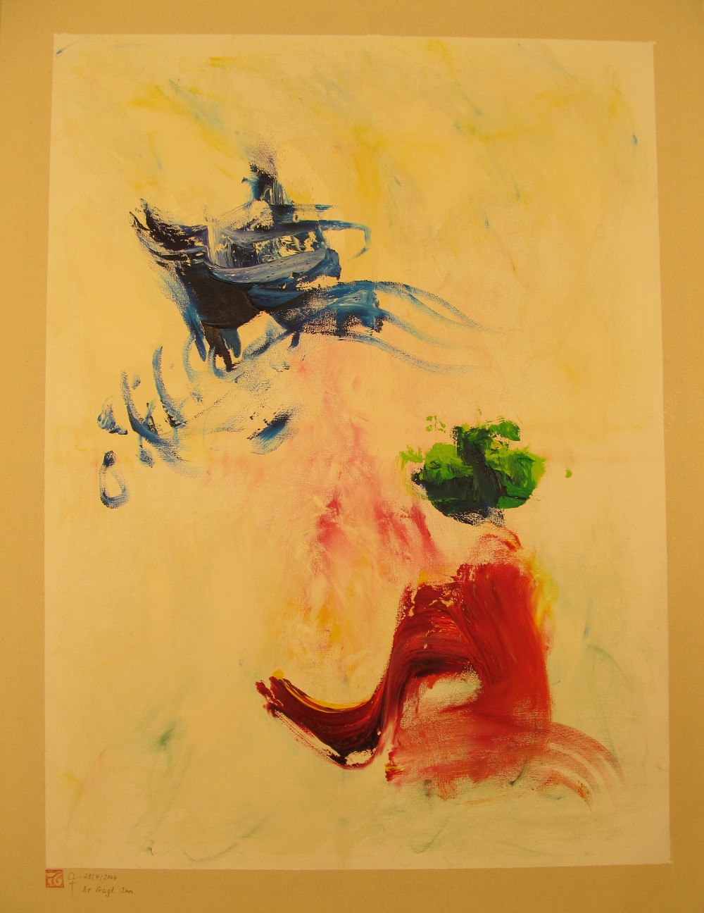 2004 Poegrafie: “ER FRAGT IHN”, Öl auf Nessel, 100x130cm