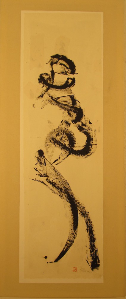 „UNGEWÖHNLICH LANGE BEINE“ 2004 Poegrafie: „UNGEWÖHNLICH LANGE BEINE”, Chinatusche auf Reispapier, auf Nessel geleimt, 80x180cm