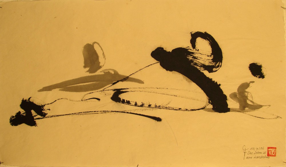 „DAS LEBEN IST EINE LANDSCHAFT“ 2007 Ru(i)nen-Schrift: “DAS LEBEN IST EINE LANDSCHAFT”, Chinatusche auf Reispapier, auf Reispapier geleimt, 48x27cm