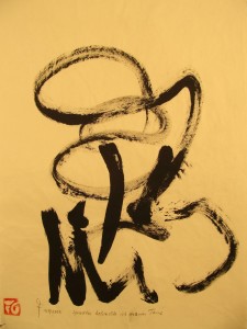 „SPRACHLOS BETRACHTE ICH MEINEN TANZ“ 2002 Ein Ductus erzählt: “SPRACHLOS BETRACHTE ICH MEINEN TANZ“, Chinatusche auf Reispapier, auf Reispapier geleimt, 34x48cm