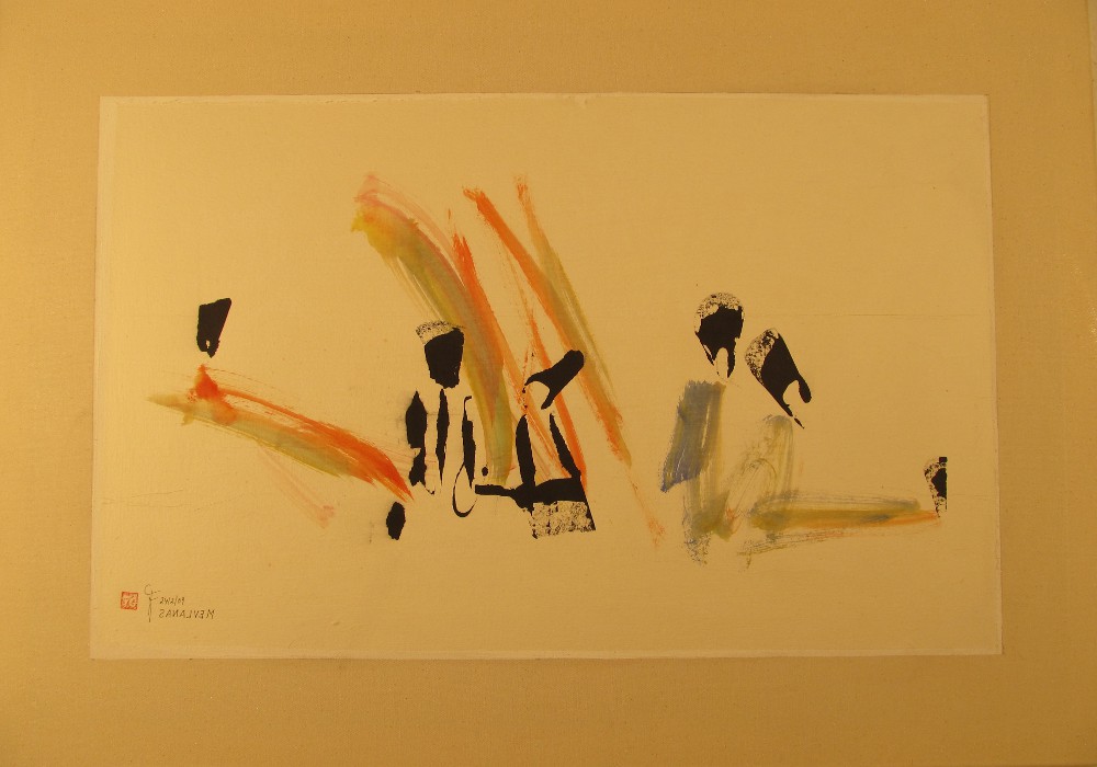 „MEVLANAS“ 2008 Logosblüten: “MEVLANA”, Chinatusche, Aquarell, Reispapier, auf Nessel geleimt, 105x75cm