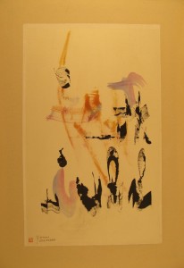 „MORGENLAND“ 2008 Logosblüten: “MORGENLAND“, Chinatusche, Aquarell, Reispapier, auf Nessel geleimt, 75x105cm