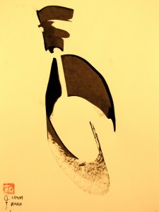 2009 Nobjektive: „HAHN“, Chinatusche auf Fotopapier gespachtelt, 21×29,5cm
