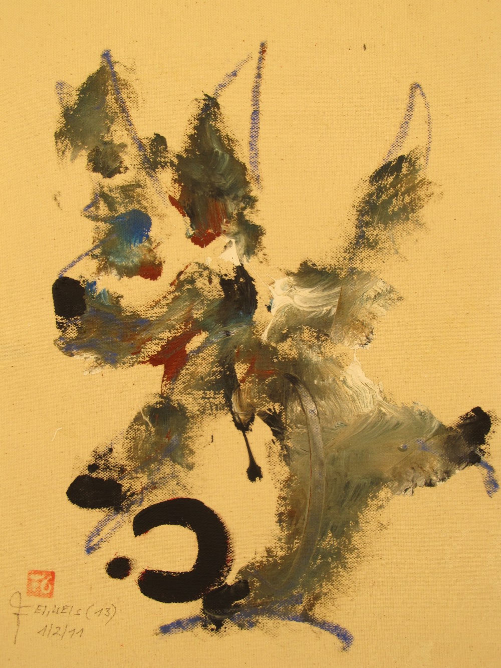 „EI,WEIs 13“ 2011 EI,WEIs (Es Ist, Was Es Ist): “13”, Acryl, Ölkreide auf grundiertem Nessel, ohne Keilrahmen, 29x39cm