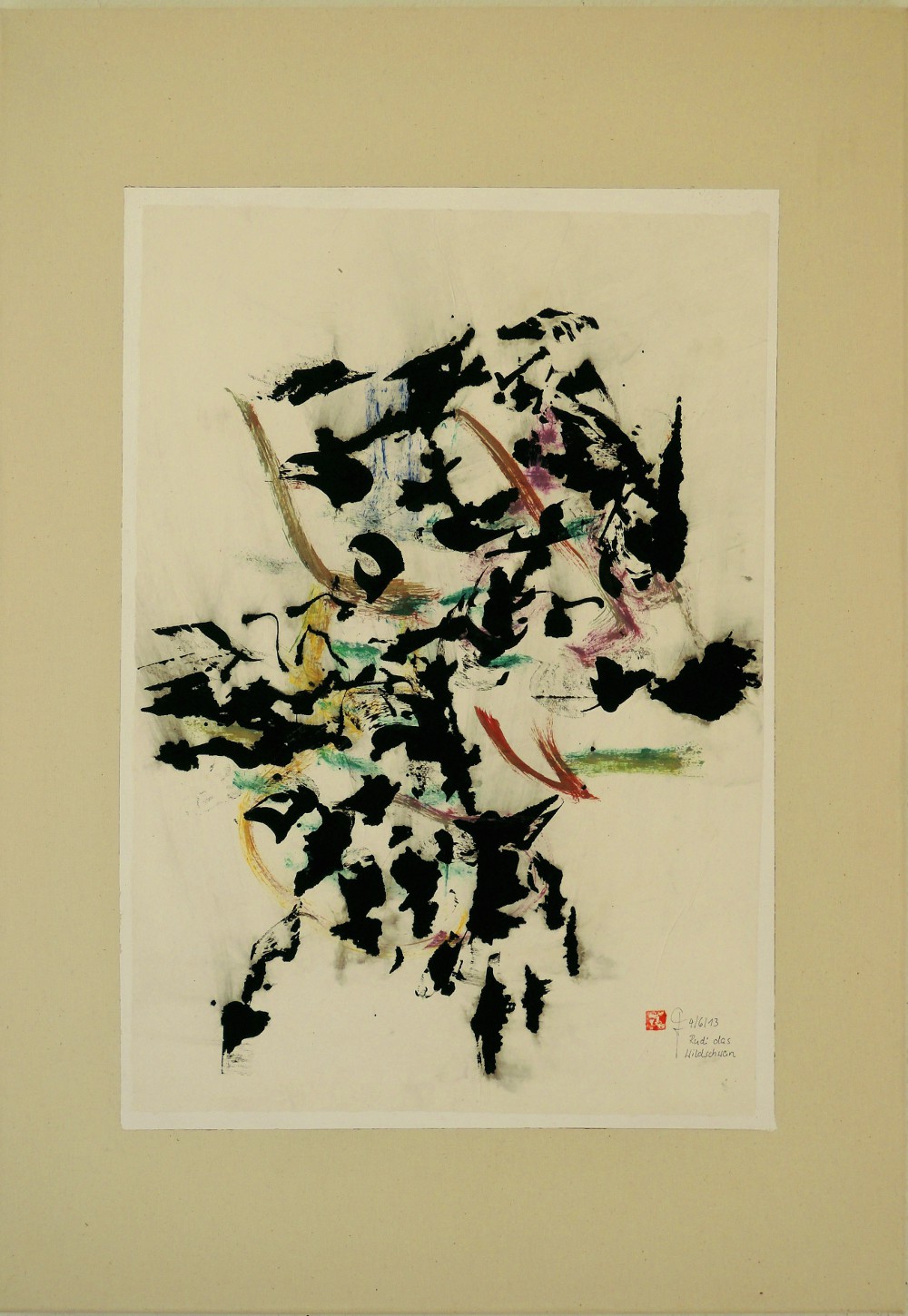 2013 WuWei: “RUDI DAS WILDSCHWEIN”, Chinatusche, Aquarell, Reispapier auf Nessel geleimt, 75x105cm