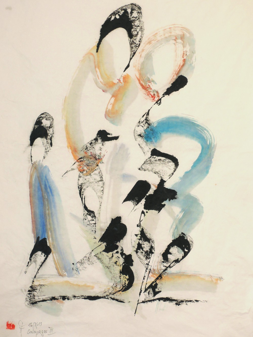 „GALAPAGOS III“ 2013 WuWei: “GALAPAGOS III”, Chinatusche, Aquarell, Reispapier auf Reispapier geleimt, 50x70cm