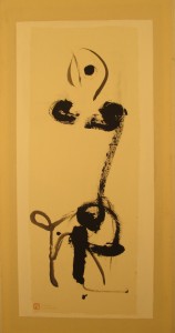 „SCHAF MIT HIRTE“ 2004 Poegrafie: “SCHAF MIT HIRTE”, Chinatusche auf Reispapier, auf Nessel geleimt, 80x150cm