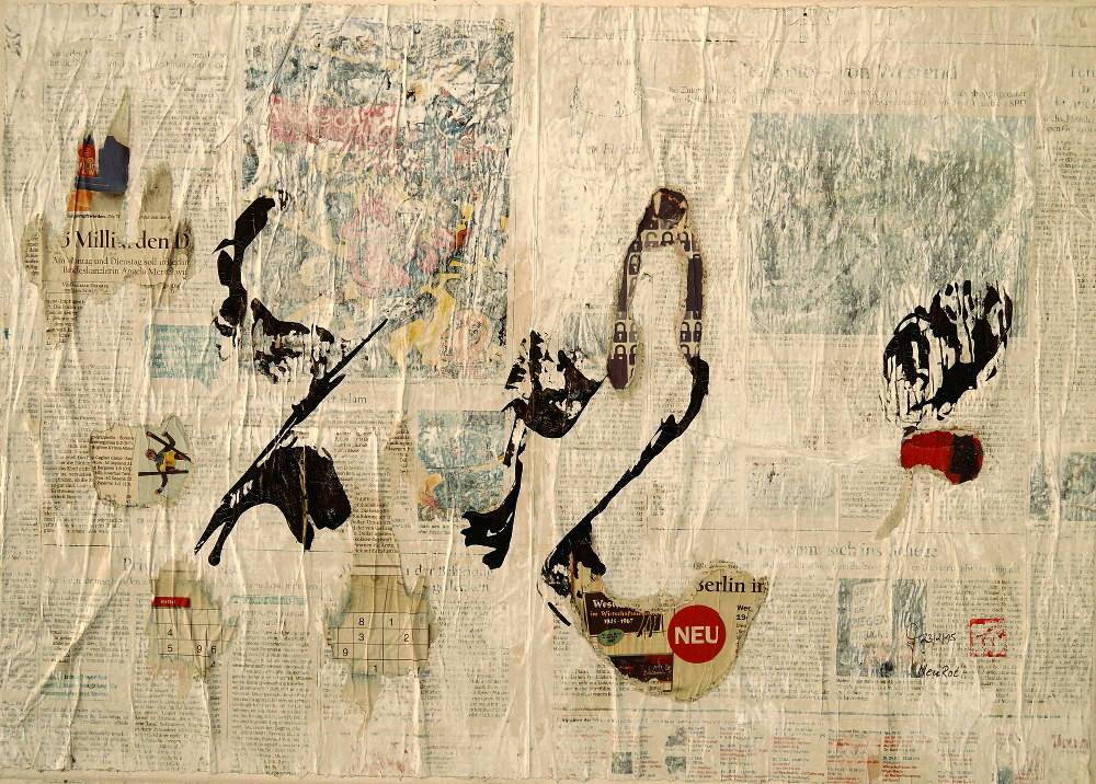„NeuRot“ 2015 „NeuRot“, Kalligrafiecollage, Acryllack, Chinatusche, Zeitungspapier, auf Nessel geleimt, 70x50cm