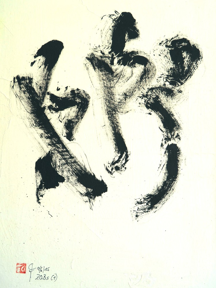 „ZOBs 1“ (Zeichen ohne Bezeichnung), Chinatusche auf Reispapier auf grundiertem Nessel geleimt, 35x50cm