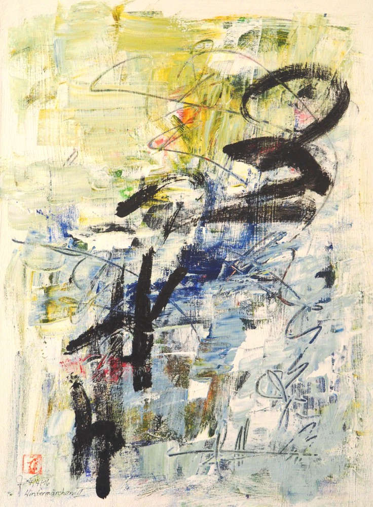 Wintermärchen II 2016 „Wintermärchen II“, Acryl, Acryllack, Ölkreide, Grafit, Chinatusche auf Nessel, 70x50cm