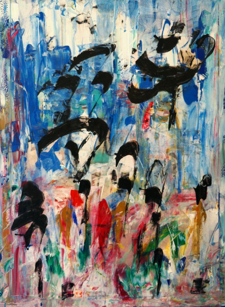 2016 „Frühlingserwachen“, Acryl, Acryllack, Chinatusche auf Nessel, 105x75cm