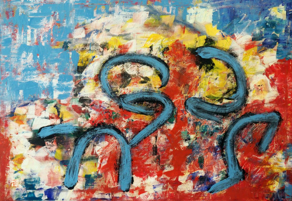 2016 „Graffiti I“, Acryl, Acryllack, Chinatusche auf Nessel, 105x70cm