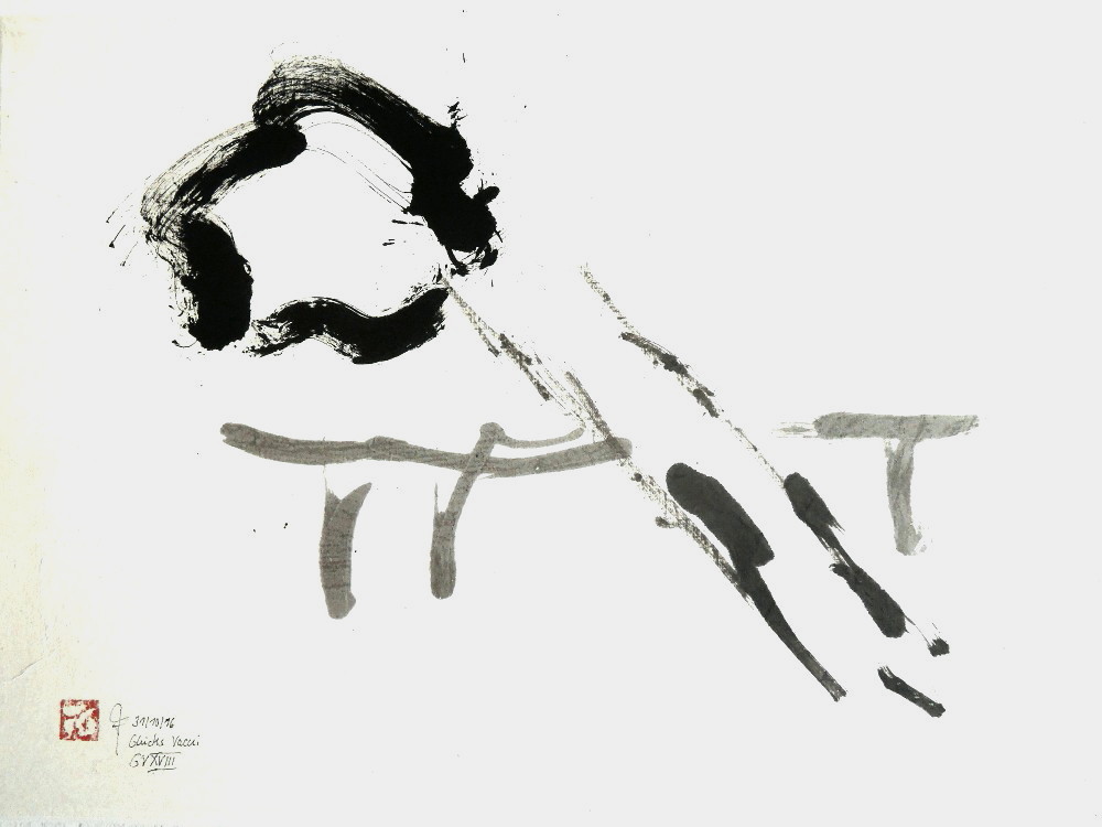 „GV – Glücks Vacui (XVIII)“, Chinatusche auf Reispapier, auf Nessel geleimt, 70x50cm