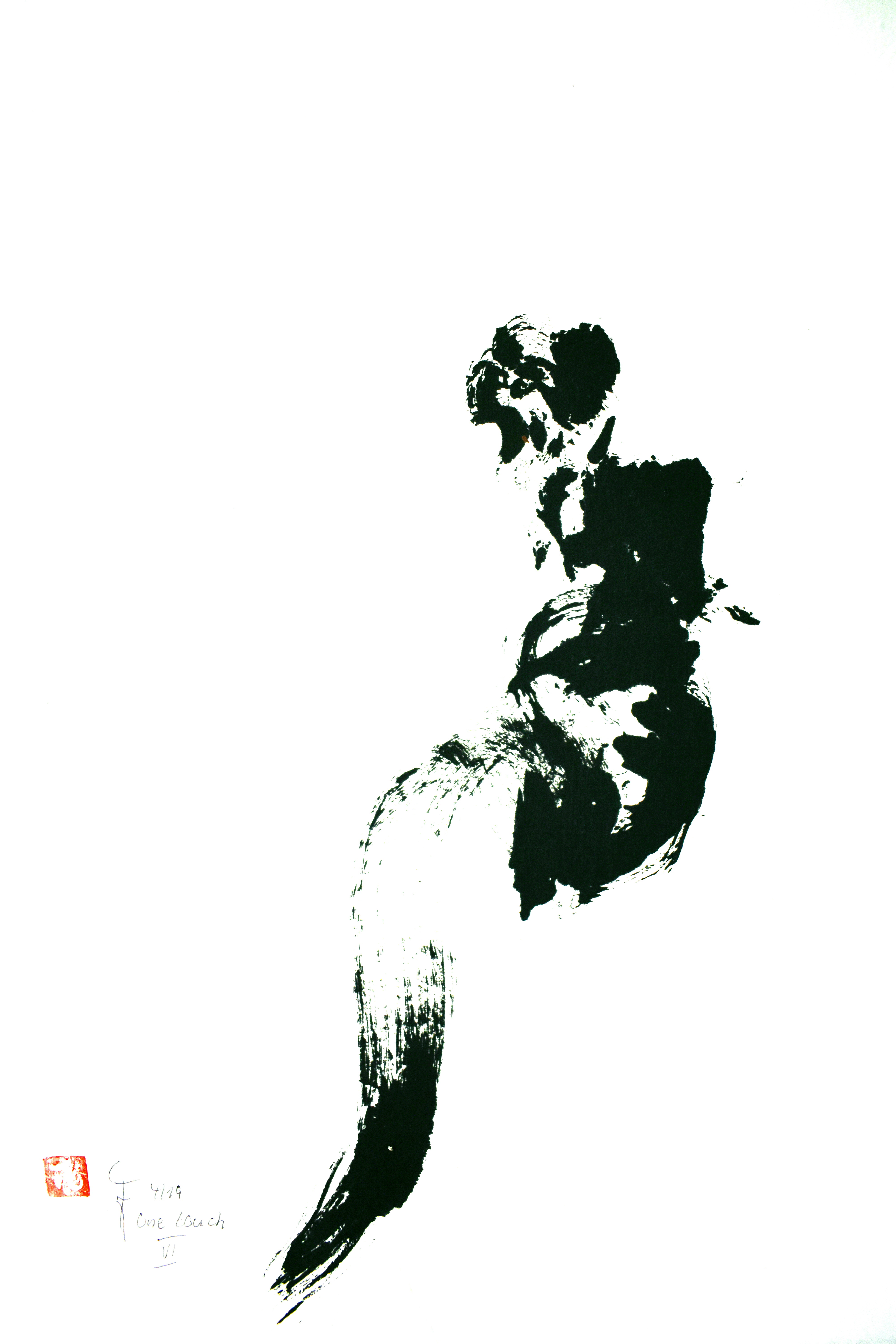 One touch VI 2019 „One touch VI“, Chinatusche auf Reispapier, auf weiß grundierte Baumwolle geleimt, Keilrahmen 35x50cm