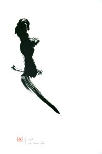 2019 „One touch XVII“, Chinatusche auf Reispapier, auf weiß grundierte Baumwolle geleimt, Keilrahmen 35x50cm