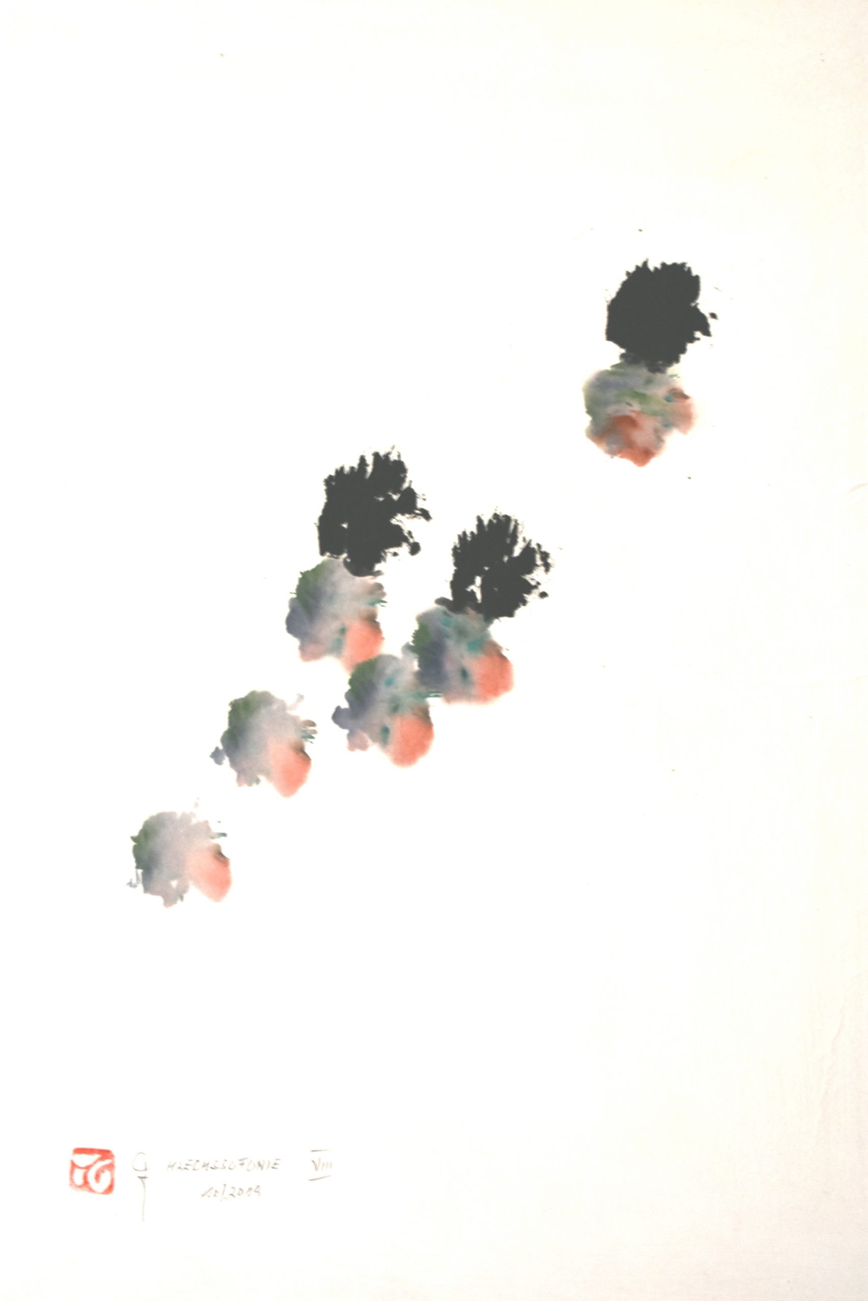 2019 „KLECKSSOFONIE VIII“, Chinatusche und Aquarell auf Reispapier, 50x70cm