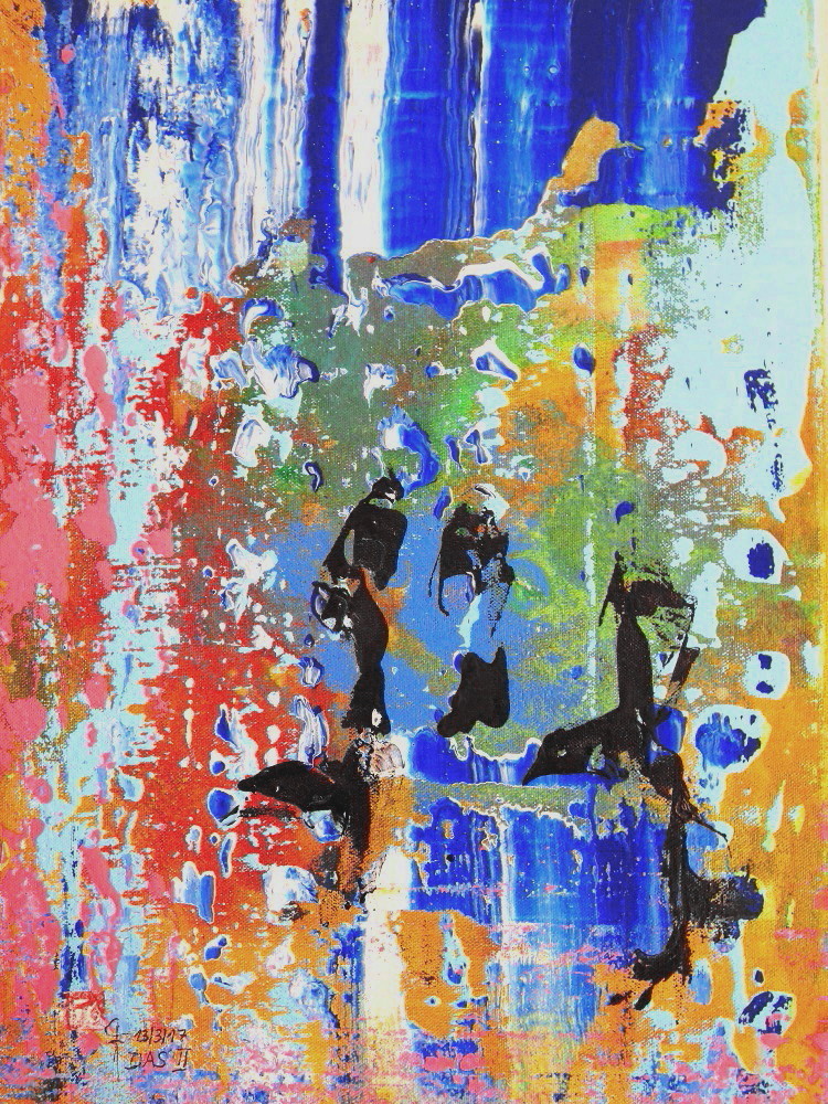 2017 „DAS (DASEINSSTROM) II“, Acryl, Acryllack, Chinatusche auf Baumwolle 35x50cm