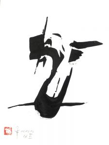 2016 „VW – VIELE WELTEN VI“, Chinatusche auf Fotokarton gespachtelt, DIN A4
