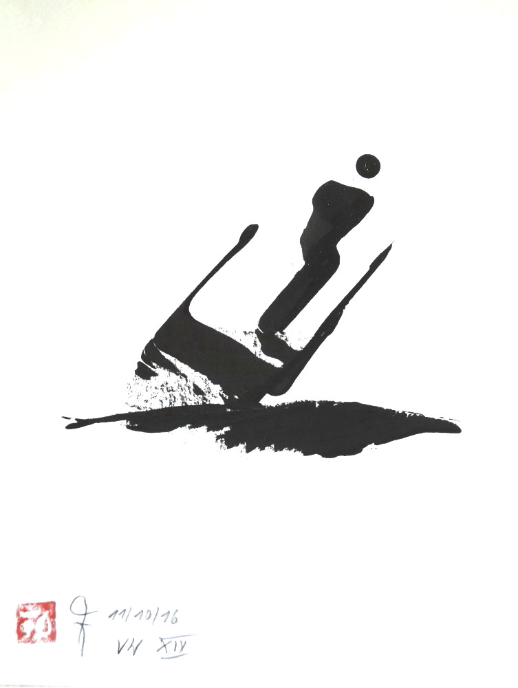 2016 „VW – VIELE WELTEN XIV“, Chinatusche auf Fotokarton gespachtelt, DIN A4