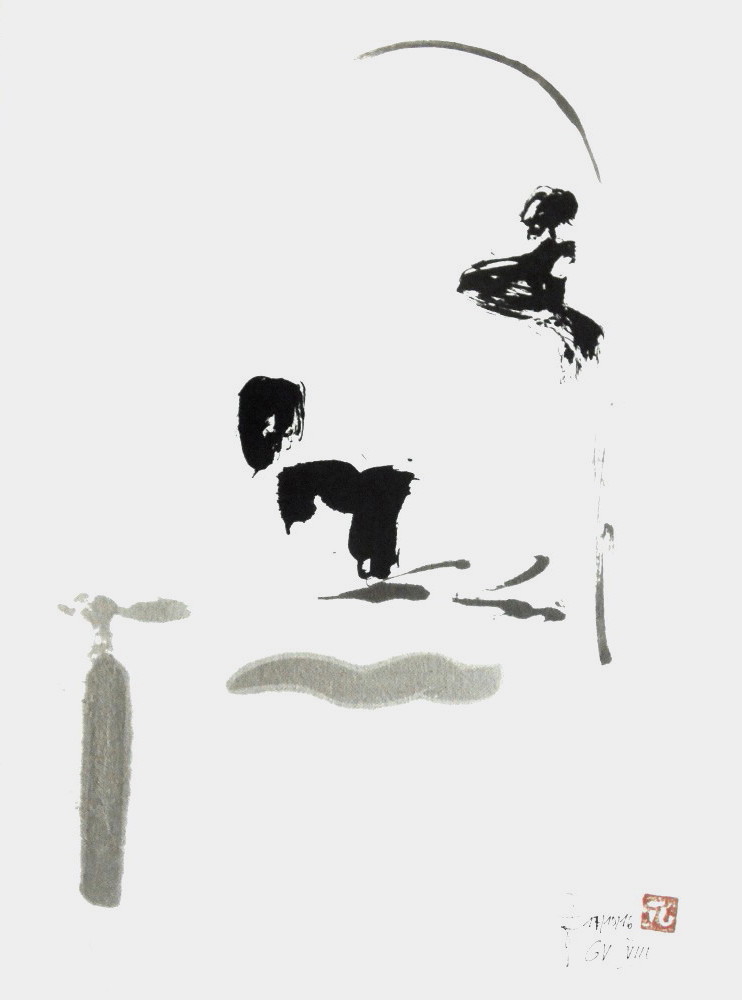 2016 „GV – GLÜCKS VACUI VIII“, Chinatusche auf Reispapier, auf weiß grundierte Baumwolle geleimt, Keilrahmen 50x35cm