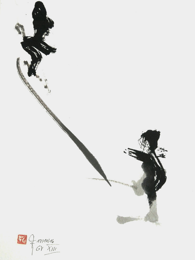2016 „GV – GLÜCKS VACUI XIII“, Chinatusche auf Reispapier, auf weiß grundierte Baumwolle geleimt, Keilrahmen 50x35cm