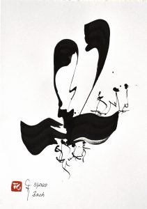 2020 „BACH“, Chinatusche auf Fotokarton gespachtelt, geschrieben, DIN A4
