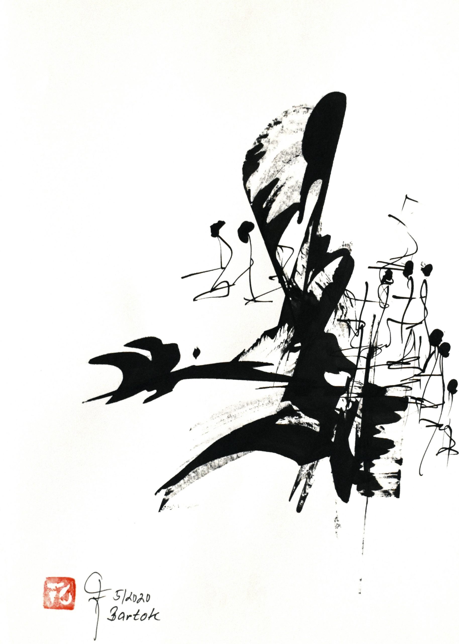 2020 „BARTOK“, Chinatusche auf Fotokarton gespachtelt, geschrieben, DIN A4