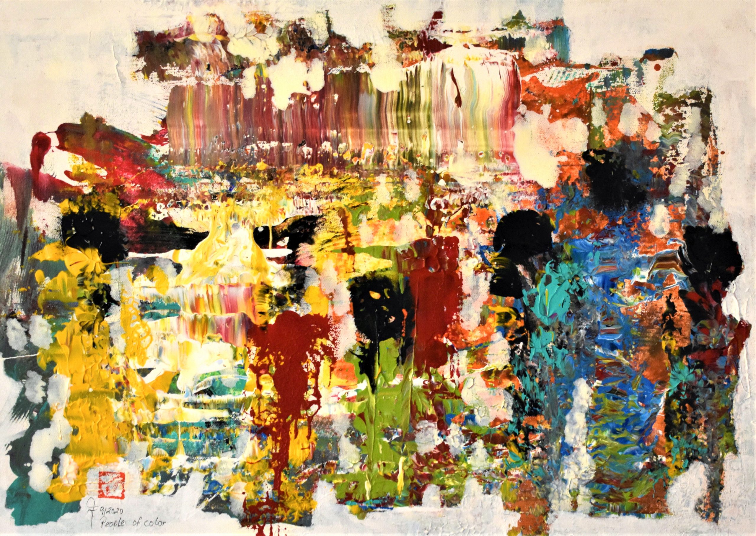 PEOPLE OF COLOR 2020 „PEOPLE OF COLOR“, Acryl, Acryllack auf Baumwolle gerakelt, weiß übermalt, 70x50cm