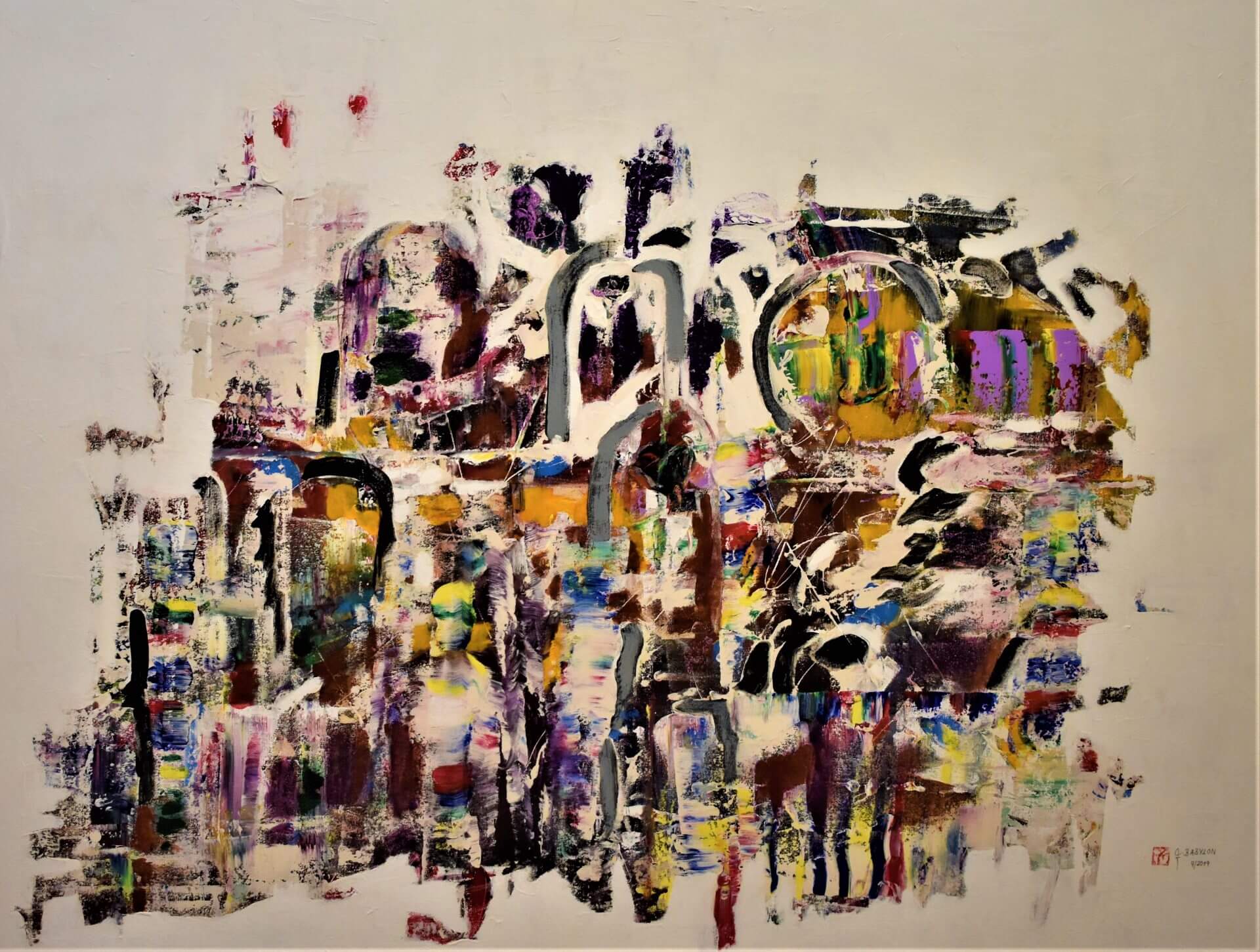 2021 “BABYLON”, Acryl, Acryllack auf Baumwolle gerakelt, weiß übermalt, 170x130cm