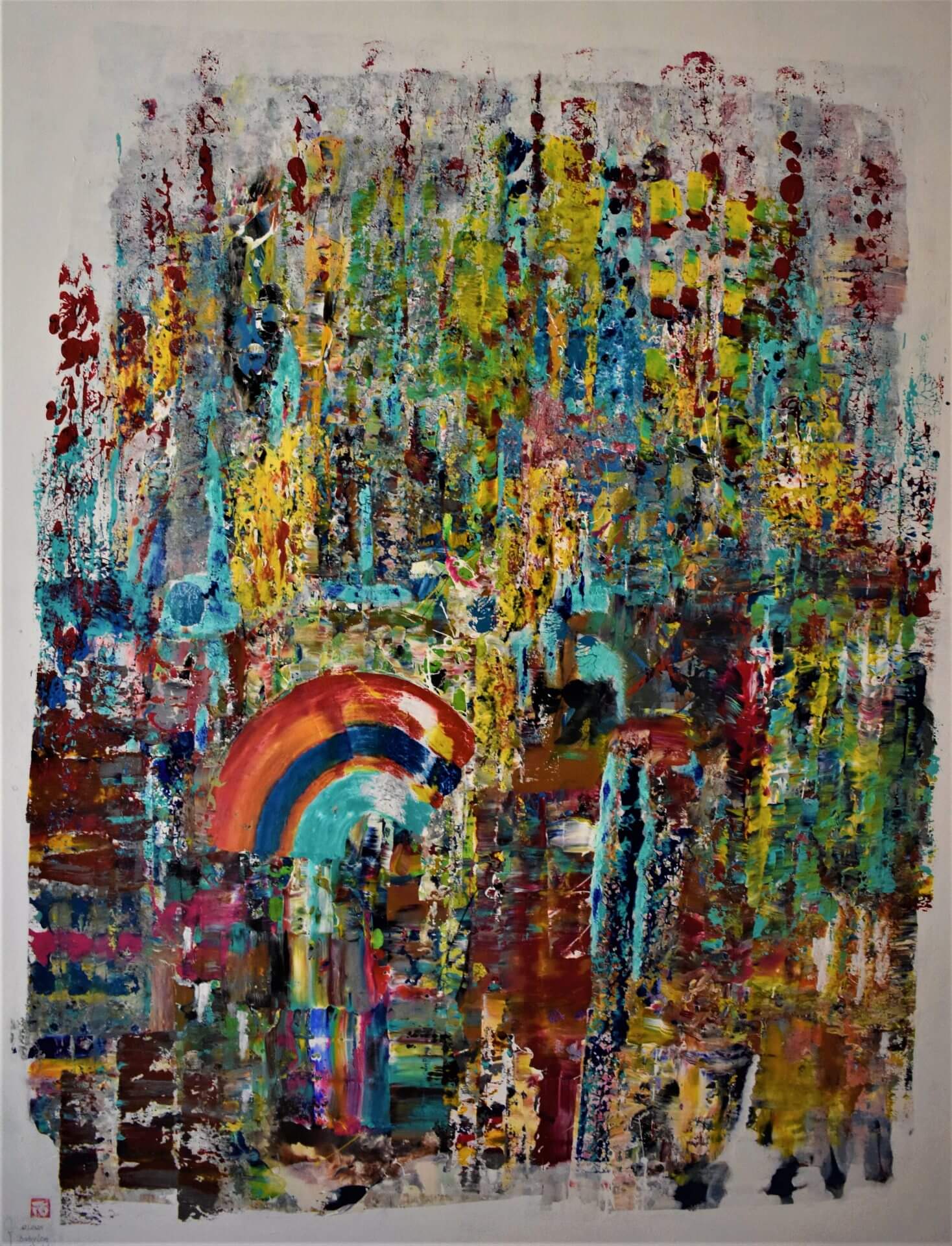 „BABYLON BEI NACHT“ 2021 “BABYLON BEI NACHT”, Acryl, Acryllack auf Baumwolle gerakelt, weiß übermalt, 170x130cm