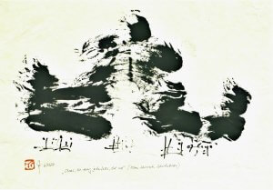 6/2021 KLAUS HEINRICH (Schriftsteller): „Chaos, ein wenig jedenfalls, tut not“, Chinatusche auf Reispapier, auf Reispapier geleimt, 70x50cm
