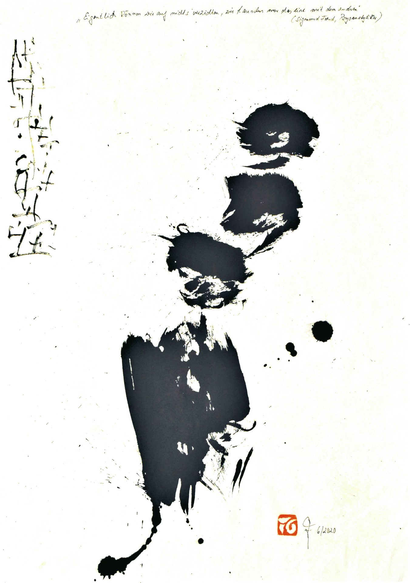 6/2021 SIGMUND FREUD (Psychoanalytiker): „Eigentlich können wir auf nichts verzichten, wir tauschen nur das eine mit dem anderen“, Chinatusche auf Reispapier, auf Reispapier geklebt, 50x70cm