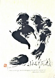 6/2021 ALENKA ZUPANCIC (Philosphin): „Könnten wir nicht sagen, dass die Liebesbewegung wie ein guter Witz strukturiert ist?“, Chinatusche auf Reispapier, auf Reispapier geklebt, 50x70cm