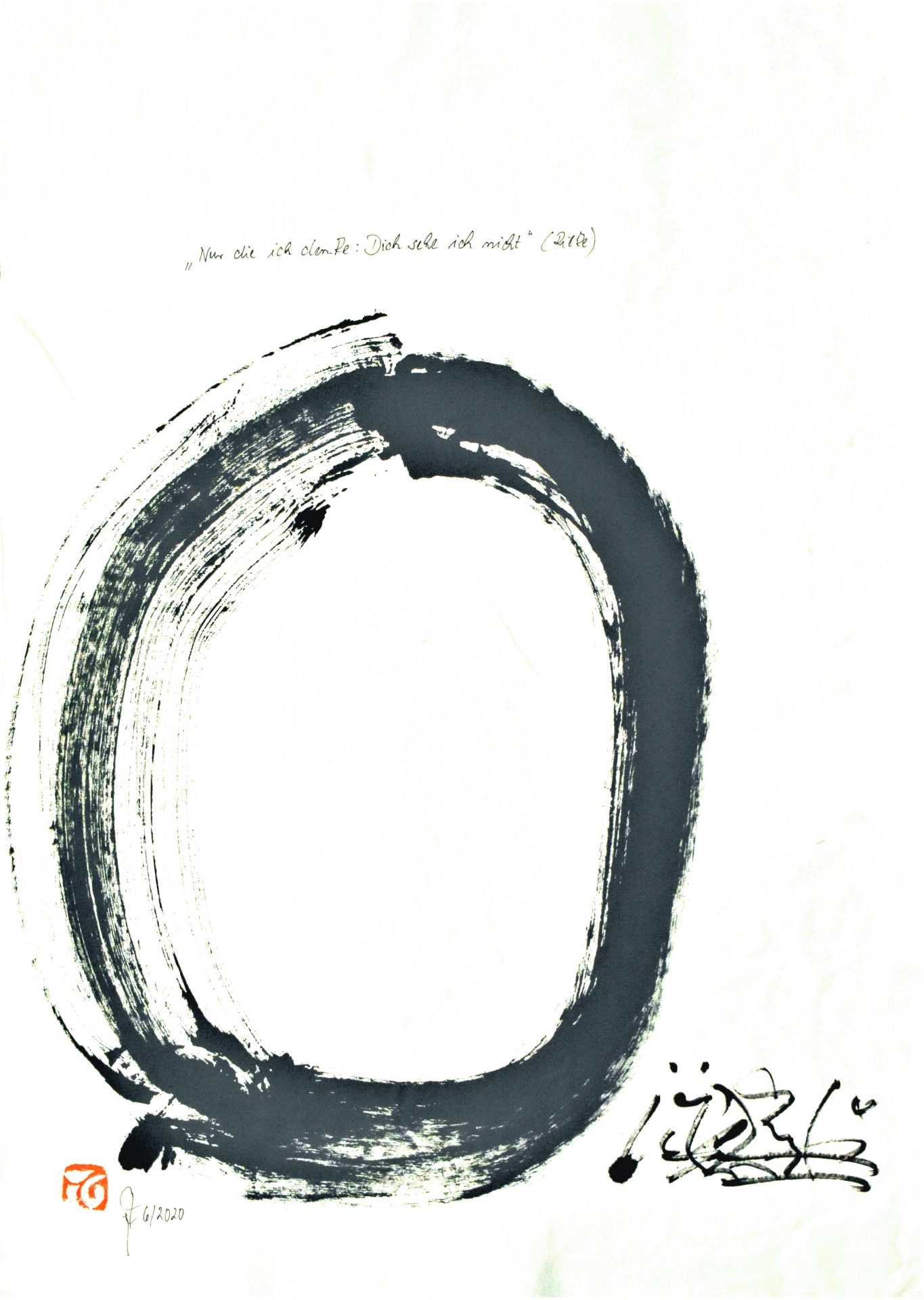 6/2021 R.M. RILKE (VII): „Nur die ich denke: Dich sehe ich nicht“, Chinatusche auf Reispapier, auf Reispapier geleimt, 50x70cm