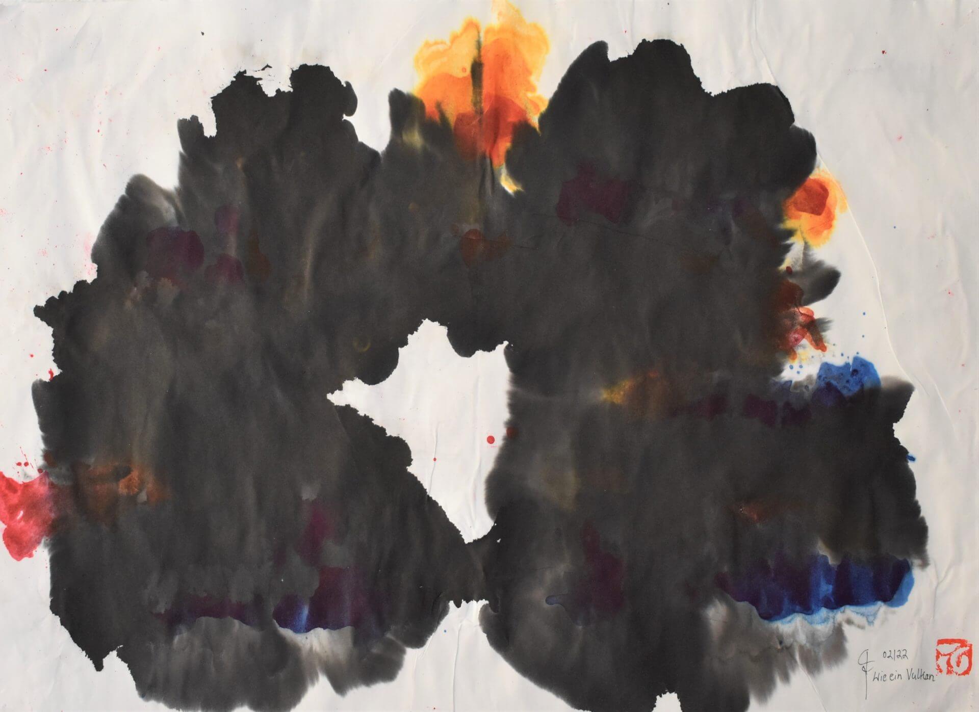 WIE EIN VULKAN 02/22 „WIE EIN VULKAN“, Chinatusche und Batikfarbe auf Reispapier, auf Reispapier geleimt, 70x50cm