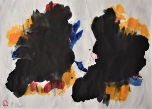 02/22 „WIE FISCHE“, Chinatusche und Batikfarbe auf Reispapier, auf Reispapier geleimt, 70x50cm