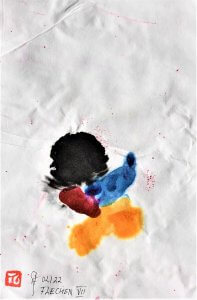 FLECKEN VII 02/22 „FLECKEN VII“, Chinatusche und Batikfarben auf Reispapier, auf Reispapier geleimt, DIN A4