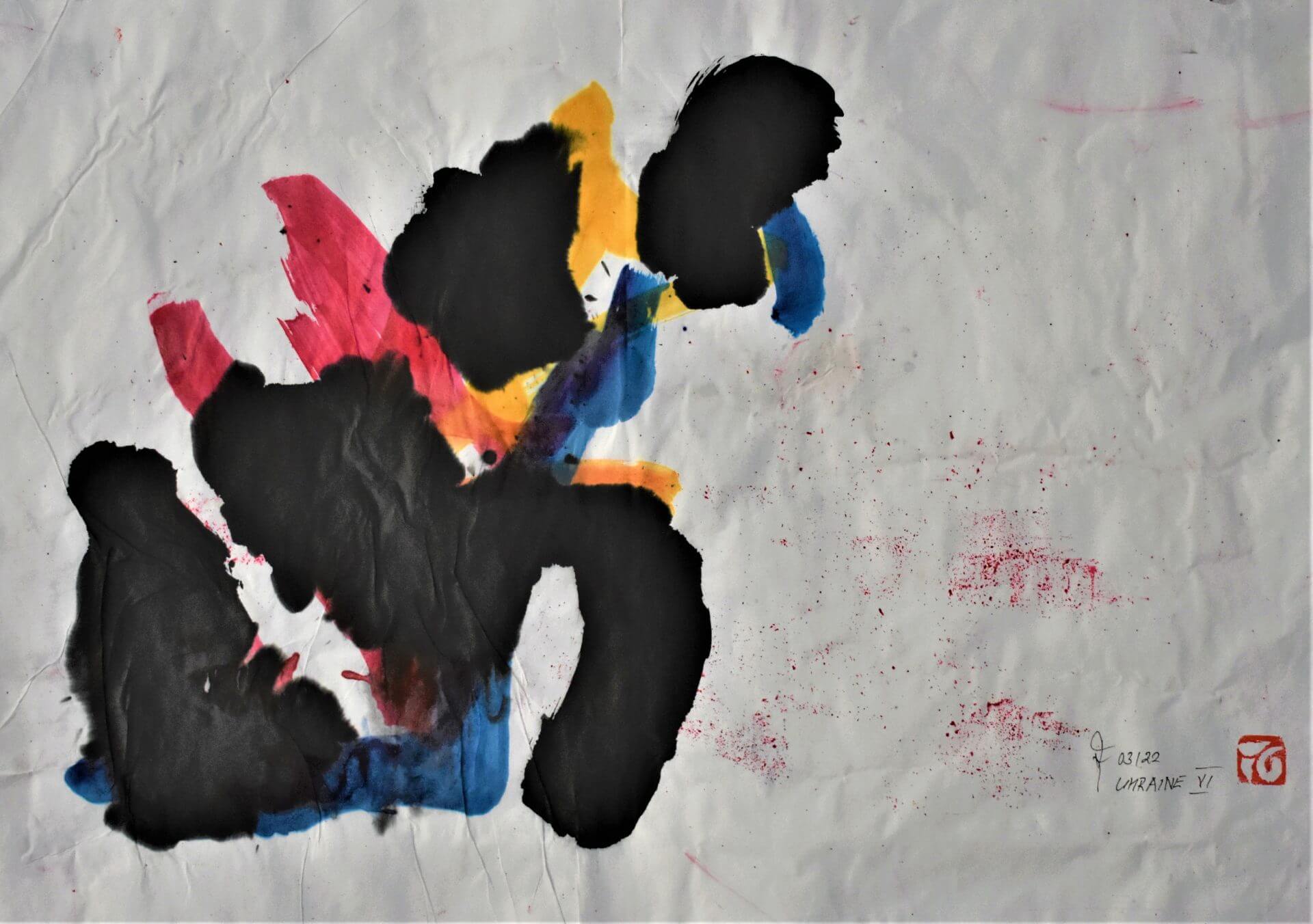03/22 „UKRAINE VI“, Chinatusche und Batikfarben auf Reispapier, auf Reispapier geleimt, 70x50cm