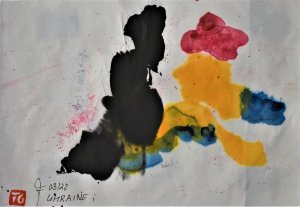 UKRAINE i 03/22 „UKRAINE i“, Chinatusche und Batikfarben auf Reispapier, auf Reispapier geleimt, DIN A4