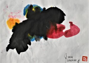 03/22 „UKRAINE g“, Chinatusche und Batikfarben auf Reispapier, auf Reispapier geleimt, DIN A4
