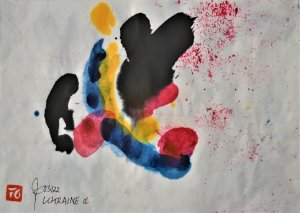 UKRAINE d 03/22 „UKRAINE d“, Chinatusche und Batikfarben auf Reispapier, auf Reispapier geleimt, DIN A4