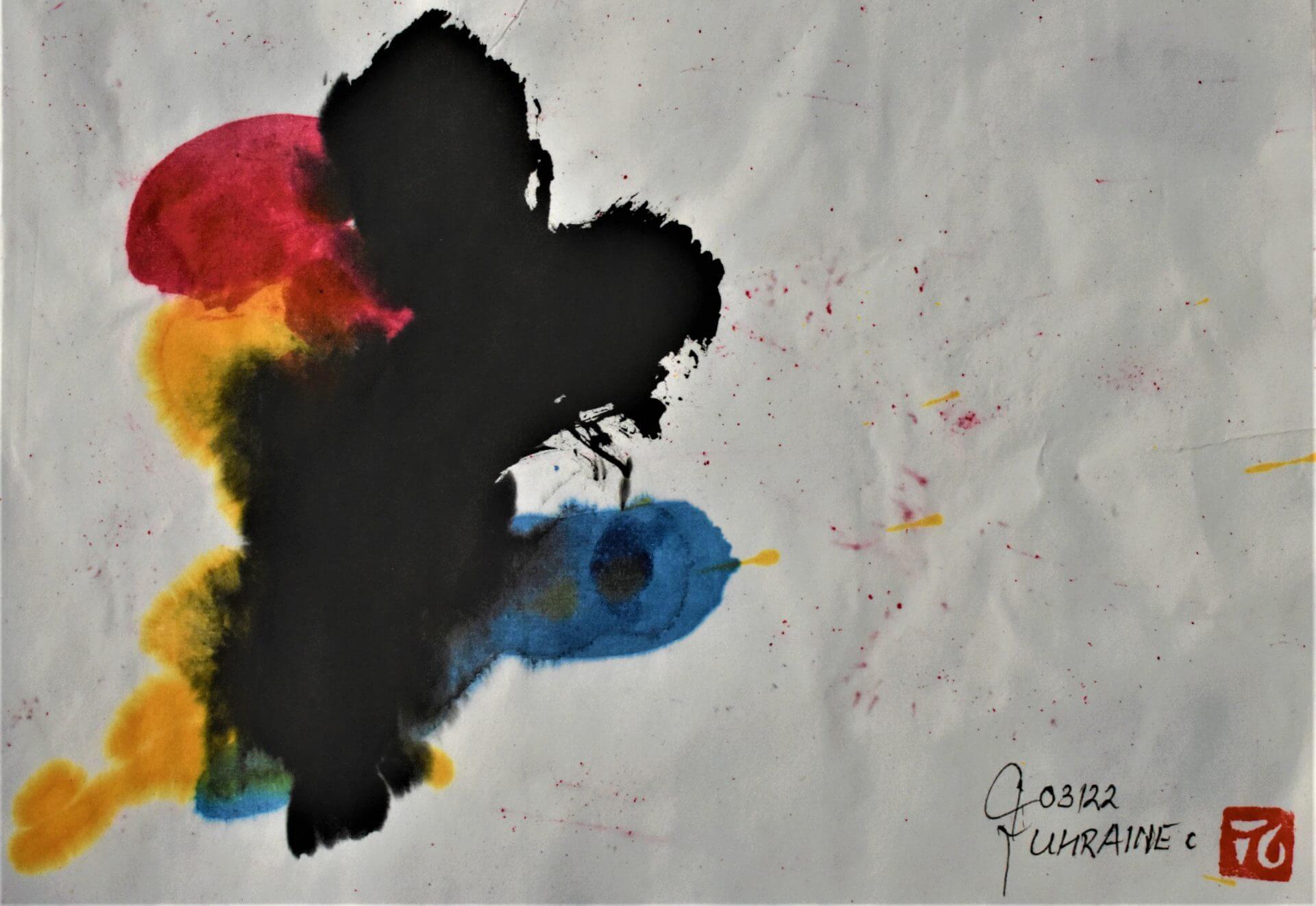 03/22 „UKRAINE c“, Chinatusche und Batikfarben auf Reispapier, auf Reispapier geleimt, DIN A4
